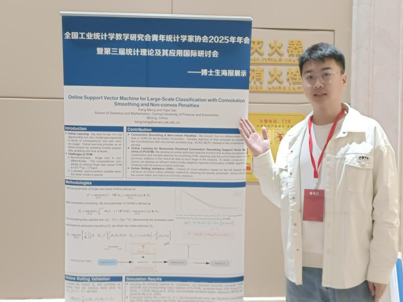 公司2021级硕博连读研究生孟康进行了题为“Online Support Vector Machine for Large-Scale Classification with Convolution Smoothing and Non-convexPenalties”的海报展示。