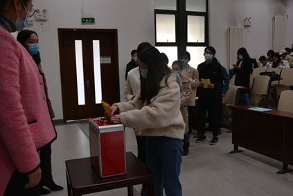 教工支部书记付红妍同志作为总监票人主持大会选举