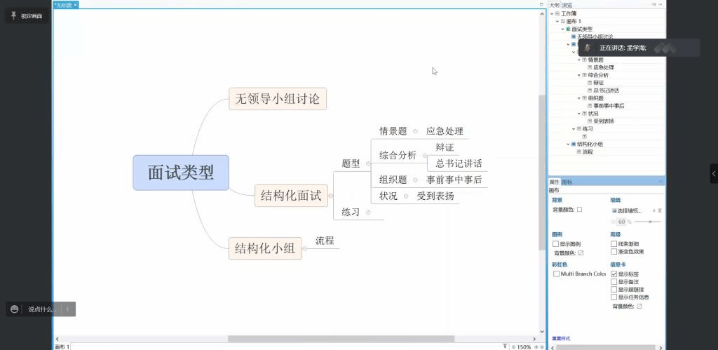 孟学海学长从面试类型深入浅出,分享了无领导小组讨论、结构化面试、结构化小组的面试流程和题型,并针对不同题型举例阐述了不同的应对方法。他强调平时需要多做练习以及提高自己的知识储备。对于同学们关于日常素材的提问,学长给出了一些收集的渠道,例如人民网、共产党员网。