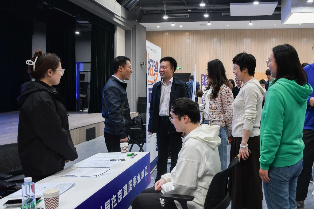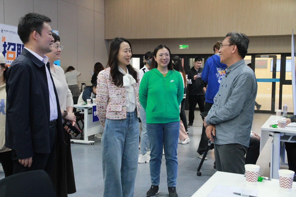 英国上市公司365经理贾尚晖、党委书记许晓娟、党委副书记何童、研究生辅导员苑欣彤老师也来到现场,对招聘会参会单位进行了走访调研,与用人单位负责人深入交流,了解行业动态、招聘需求与用人标准,并向参会单位表示感谢,同时鼓励同学们积极求职,并向用人单位大力推荐公司员工。