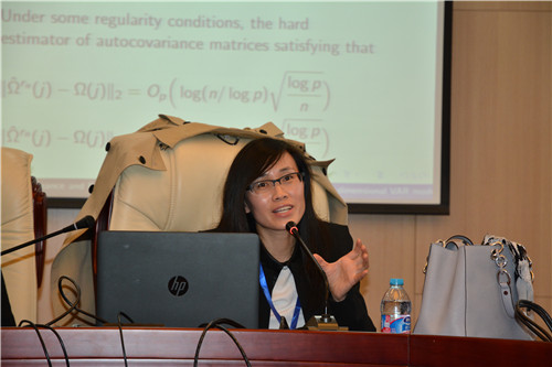 开幕会后的大会主旨报告阶段由公司王立勇教授主持。英国上市公司365的三位手拉手特聘教授,美国乔治华盛顿大学的梁华教授、美国威斯康星大学的张正军教授、美国佐治亚大学的钟文瑄教授分别作了主旨报告:A Hybrid of Single Index Models and Additive Models,Autoregressive Tail-index Model for Financial Time Series,Leverage sampling to overcome the computational challenges for big spatial data。
