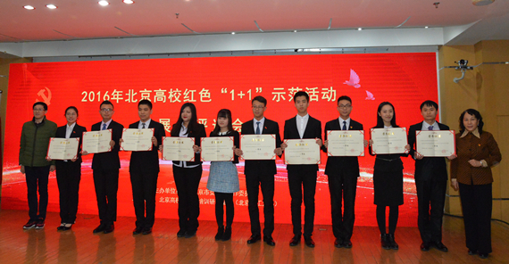 12月21日,2016年北京高校红色“1+1”示范活动展示评审会在北京化工大学举行。公司2015、2016级本科生联合党支部携手北京汽车集团北京汽车股份商品中心党支部开展的红色“1+1”共建活动,在与来自北京大学、清华大学、中国人民大学、北京师范大学等高校近1000余个共建员工党支部的角逐中脱颖而出,最终荣获2016年北京高校红色“1+1”示范活动一等奖。