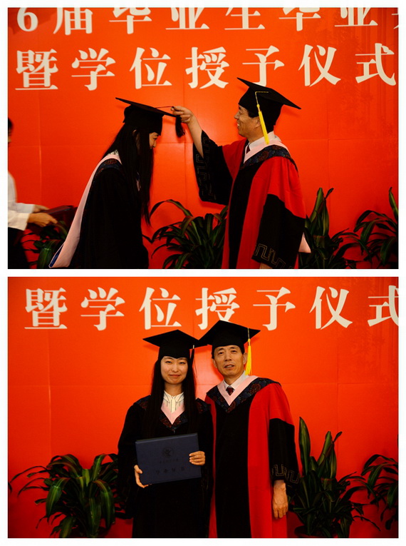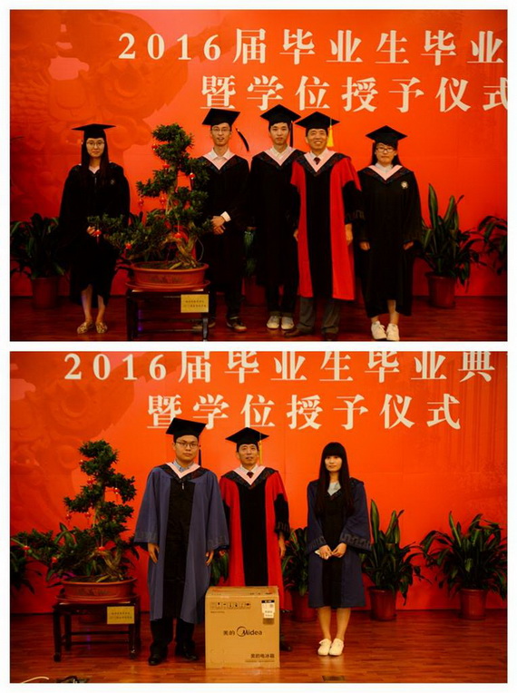 在轻松欢快的音乐声中,2016届毕业生学位授予仪式正式开始。副经理于伟红老师、毛炳寰老师分别宣读了2016届本科、硕士毕业生学位授予名单,毕业生们满怀喜悦与激动的心情登台受礼,数学教学部主任、副经理殷先军老师为毕业生一一拨转流苏,颁发毕业证书和学位证书,并与同学们合影留念。