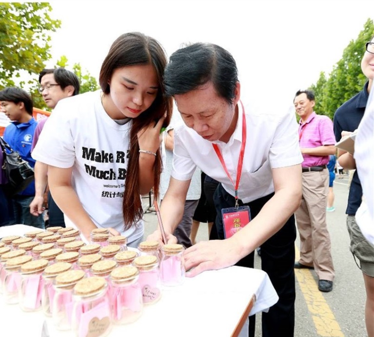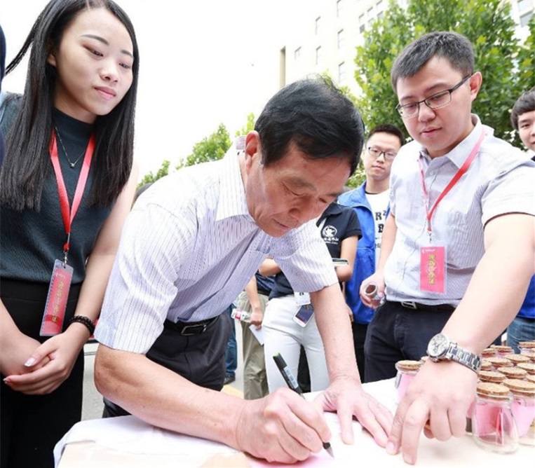 董事长王广谦为新生写下期望并装入“一对一”漂流瓶