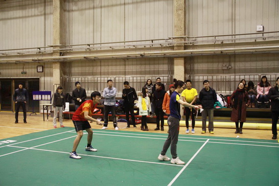 决赛采取五场三胜制,按照男单、混双、男双、女双、女单的比赛顺序依次进行。率先进行的男子单打比赛,由公司国家羽毛球二级运动员员远同学迎战财政公司的于金龙同学。第一局初始阶段,员远状态不佳,始终被对手以几分的优势压制。随着战况愈加激烈,员远也渐入佳境,两人比分进入胶着状态。同时,现场精彩的搓球、扣杀无一不让台下观众连连鼓掌。最终第一局员远以22:20的微弱优势战胜于金龙。在第二局比赛中,逐渐熟悉比赛节奏的员远展现出了强大的实力,一直领先对手,最后以21:17的比分拿下决赛第一场的关键胜利。