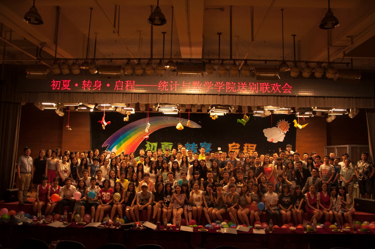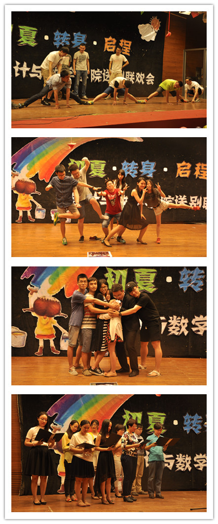 即将离开沙河的12级同学带来合唱《想把我唱给你听》,将毕业生对沙河的留恋轻轻诉说,“统计一班统计二班金融数学班永远在一起”的标语,更激发了毕业生浓浓的离别之情;整场晚会以大合唱《朋友》收尾,毕业生们走上金色大厅的舞台,与相处了四年的同学、朋友、伙伴们齐声高唱“一句话,一辈子,一生情,一杯酒”,即将踏上新旅程的他们,都将记住这段刻骨铭心的友谊。大学中满满的感动、青涩的过往、激情伤感等淋漓尽致在眼前浮现,勾起了毕业生们的离别情愫,所有旋律都汇成青春的回忆,成为奋斗前行的动力。