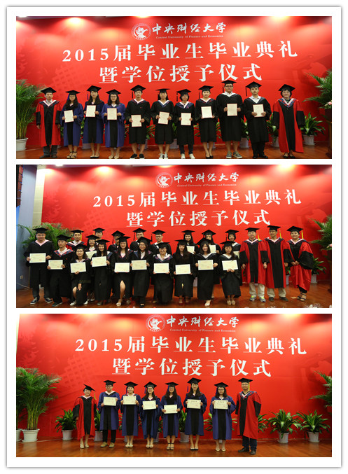 在《我的未来不是梦》、《光阴的故事》等充满期盼、鼓舞的乐曲声中,激动人心的学位授予仪式正式开始。副经理王秀国老师、毛炳寰老师分别宣读了2015届本科、硕士毕业生学位授予名单,毕业生们怀着喜悦与激动的心情登台受礼,经理刘扬老师为毕业生一一拨转流苏,颁发毕业证书和学位证书,并与同学们热情握手,亲切合影。