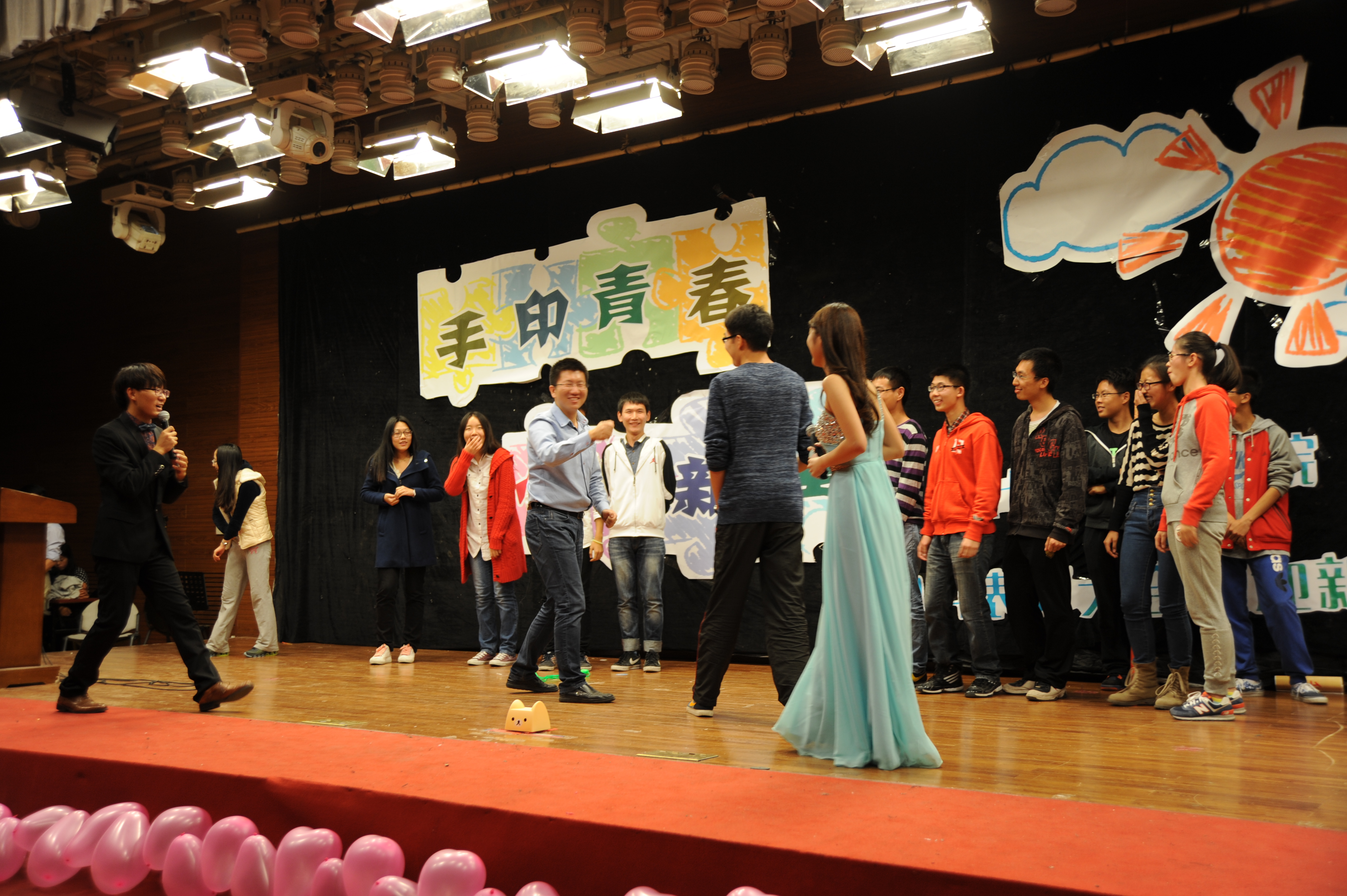 每次晚会,总少不了老师和员工共同的表演。在互动环节中,走出课堂的老师与同学们一起在舞台上参与游戏,夸张的动作,趣味的配合,让台上台下都沉浸在欢乐的笑声中,也让同学们见到了老师们生活中的另一面。