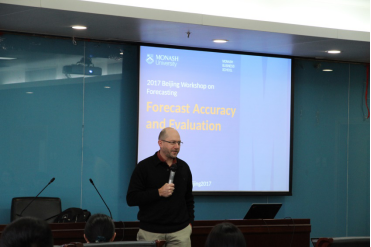 18日上午9:00-12:00,澳大利亚莫纳什大学商务统计系教授、International Journal of Forecasting主编Rob J. Hyndman教授做了关于预测的主旨演讲。Hyndman教授围绕预测的基本概念、预测的眼前方法、预测的精确度和效果评估,展开了讨论。Hyndman教授讲解了预测领域的一个前沿应用:自动时间序列预测,并详细介绍了ETS,ARIMA等被广泛应用的模型。接着,他又与在场嘉宾们深入探讨了一些近期提出的新模型的前景,讨论氛围十分融洽。Hyndman教授介绍了预测领域的另一个重要课题:分层预测。分级预测不仅在理论上十分重要,在实际生活中也被广泛应用。Hyndman教授介绍了其中的重要概念、实际使用方法,并展示了他的许多研究成果,其中大部分已经上传到互联网上供全世界的研究者分享。Hyndman教授的本次报告幻灯片可以从https://robjhyndman.com/seminars/beijing2017/下载。