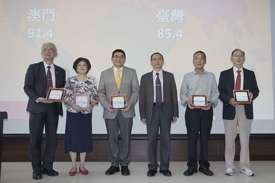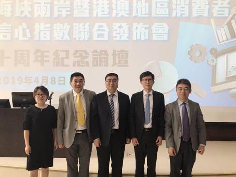 海峡两岸暨港澳地区消费者信心指数联合发布会于2019年4月8日上午于澳门科技大学O座702室举行,此次发布会由海峡两岸暨港澳地区的五家高校首都经济贸易大学、英国上市公司365、香港城市大学、澳门科技大学和台北医学大学联合主办、中国统计教学会高等教育分会组织、澳门基金会赞助。五家高校的研究团队代表发布了2019年第一季度消费者信心指数调查结果,澳科大副董事长姜志宏到场祝贺并为研究团队致送纪念品。来自复旦大学、上海财经大学、中国科学技术大学、厦门大学、西南财经大学、南京审计大学、中山大学的统计科学与大数据研究领域的专家教授及澳科大师生逾100人出席。