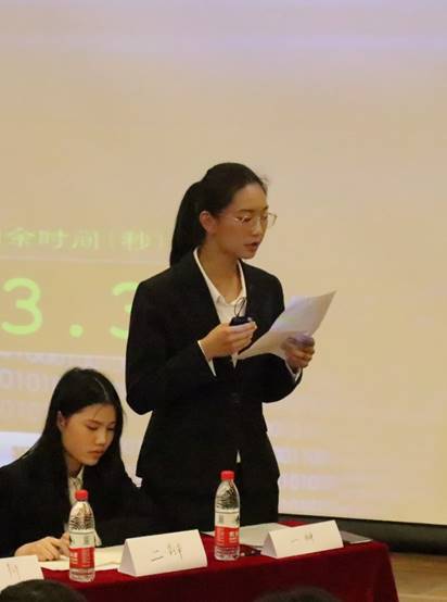 随后,毕业辩手表演赛正式开始,正反双方就“快乐辩论是/不是一个谎言”的辩题展开激烈的辩论。本场比赛邀请到了公司刘宇璇、李懿澄、钟星智、符石、王晓梦、王万山等6位毕业辩手与两位三年级辩手一起分为正反两方就这一辩题进行交锋。经验丰富的学长学姐们沉稳自如的谈吐,条理清晰的逻辑,令在座的观众深深折服。这场表演赛不仅是一场赏心悦目的辩论表演,更是即将毕业的学长学姐们对他们辩论经历的圆满纪念,也让在场的中财学子感受到了他们对辩论的热爱和公司的思辩文化氛围。
