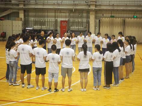 为鼓励同学们尽快融入新环境,7月19日晚,营员们在沙河体育馆迎来了一场趣味性的素质拓展活动。来自中国青年政治公司的彭振老师带领大家参与到精心设计的团队游戏中,两个小时的时间里,营员们从陌生到熟悉、从拘谨羞涩到积极互动,在热烈而活泼的游戏氛围中度过了中财第一个夜晚。