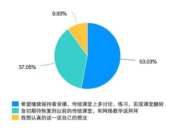 调研结果显示,线上教学有线上教学的不足之处,在学习自觉性、学习动力、沟通交流的学习氛围上,不及传统课堂。