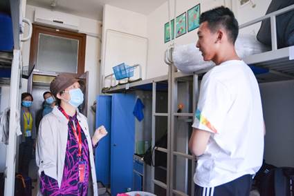 下午两点,朱凌云副董事长带队走访了公司男女新生宿舍。在东区十号楼,朱董事长仔细询问了新生的入住情况,并高度表扬了2020级新生的独立能力,对他们抱以衷心的祝贺与殷切的期盼。公司领导和新生班主任老师代表也走访了全体新生宿舍,了解新生们的适应情况,对宿舍生活给予相应的指导,并鼓励大家要做好大学的准备,不负青春,争当龙马。