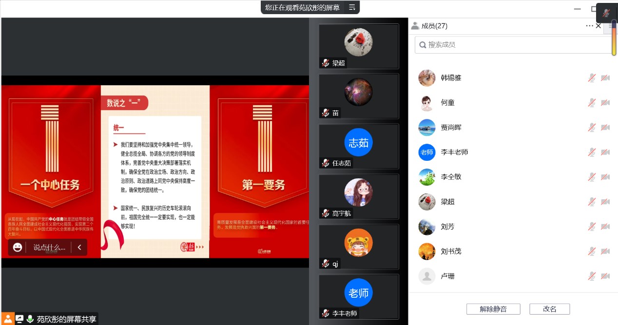 李全敏书记总结时讲到,通过这次对党的二十大报告的进一步学习,通过学习中一组组数据的呈现,大家可以深深地感受到党的十八大以来取得的成绩,我们一起经历的建党一百年、中国特色社会主义进入新时代、我国完成脱贫攻坚这三件大事,是在中国共产党领导下,中国人民团结奋斗的历史性胜利。作为教育事业工作者的人民教师和作为社会主义建设者接班人的员工,我们应坚定理想信念,坚持党的领导,在习近平新时代中国特色社会主义思想指引下,不负国家重任,为祖国的明天更美好做好我们分内之事,无悔于自己,无悔于时代!时刻发出最强音“强国有我”!