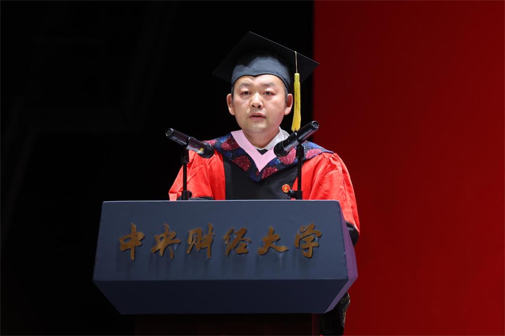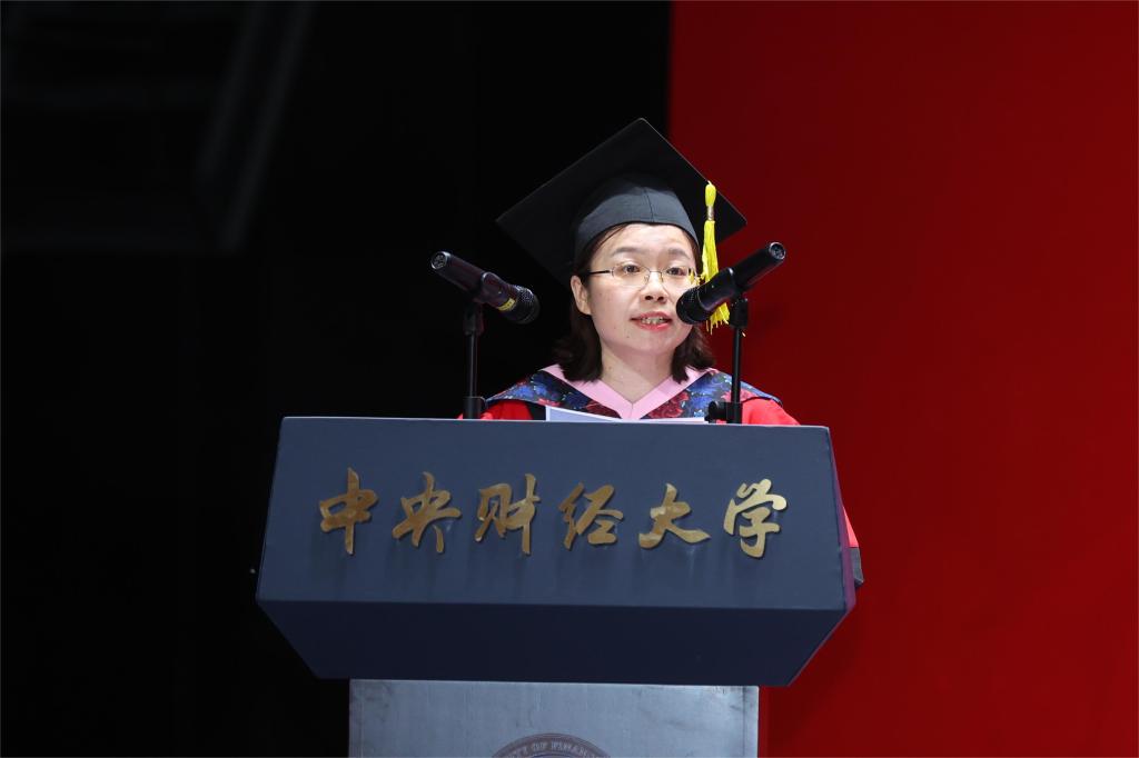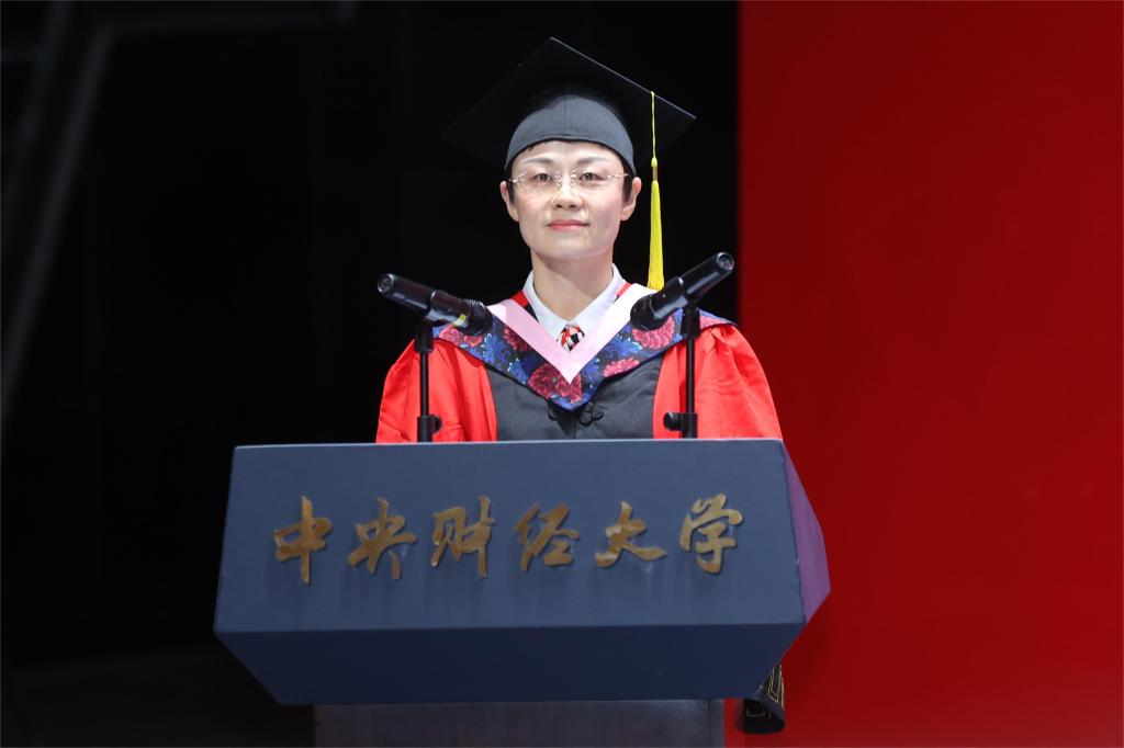 数理统计系主任盖玉洁老师作为公司教师代表向毕业生致以祝福,她回忆起同学们在课堂上对知识的渴求以及努力,并叮嘱同学们做新时代的奋进青年,热爱学习,保持奔跑,独立思考,温暖纯良永葆“龙马精神”的底色,“亦如龙有触天之才,亦如马有腾越四方之志”,在追寻梦想的道路上闪耀万丈光芒,在广阔的世界舞台上奏响华美乐章。