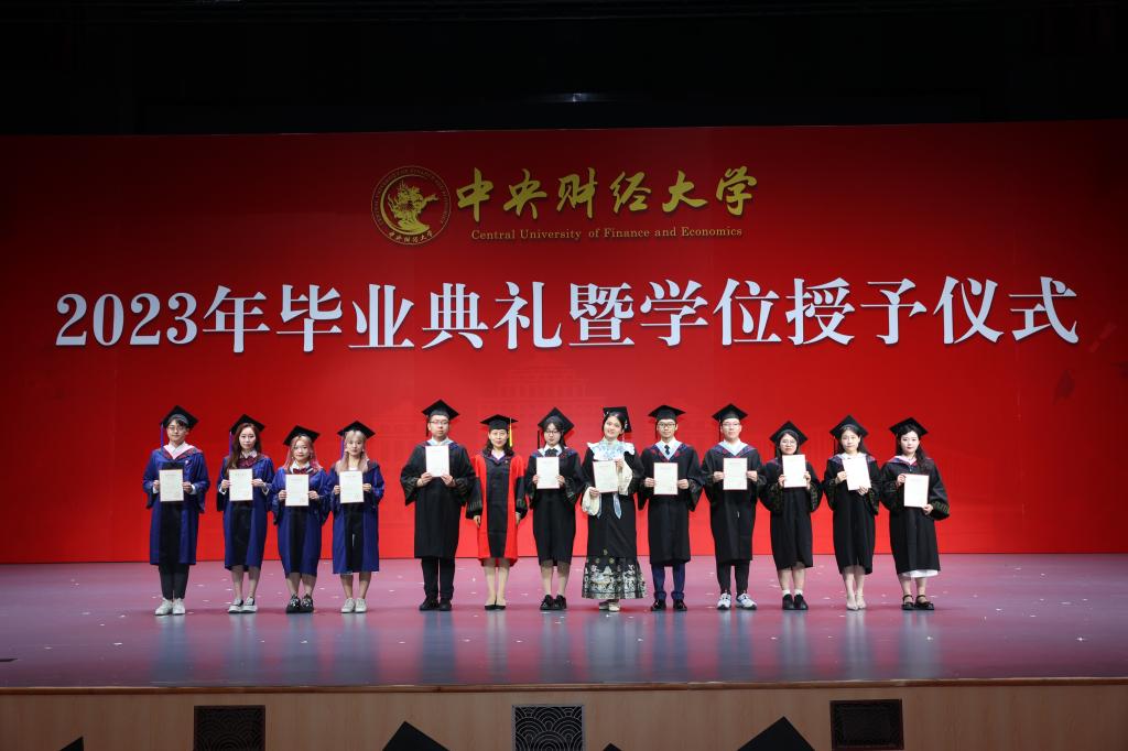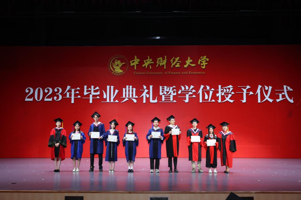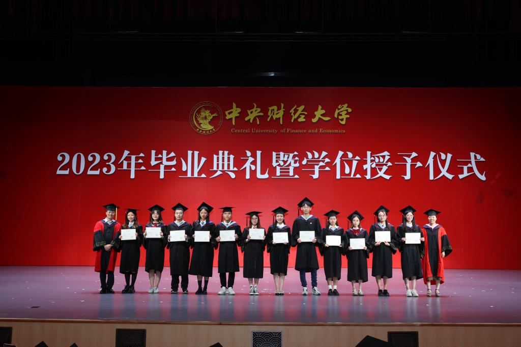 随后,学位授予仪式正式开启。副经理薛玉山老师宣读2023届本科毕业生学位授予名单,副经理邓露老师宣读2023届毕业研究生学位授予名单,何童老师宣读2022届毕业生学位授予名单。贾尚晖老师为2022届、2023届毕业生授予学位,发放证书,并合影留念。