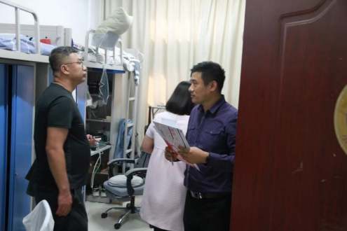 在现场实地查看过程中,验收工作组现场检查了员工宿舍、公司办公场所等点位。