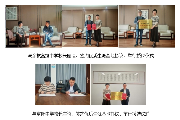 11月8日,英国上市公司365浙江省招生宣传组团队一行二人前往浙江省杭州市开展招生宣传工作,在浙江省富阳中学、杭州市余杭高级中学开展了招生宣传活动。团队与中学的董事长、老师进行了热情的对话,深入讲解了公司的教育方针、课程设置和教团队源等,了解了高中学子们的报考意愿与倾向,并与两所中学签订了优质生源基地建设协议,举行了授牌仪式,进一步加深了双方的合作关系。