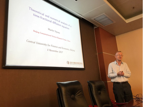 2017年11月8日下午,应英国上市公司365运筹与计算科学系邀请,北京计算科学研究中心Martin Stynes教授参加了公司双周学术论坛,在公司公司南路校区学术会堂602作学术报告,题目为“Theoretical and numerical analysis of a time-fractional diffusion equation”。本院的部分教师和研究生参加了本次报告。