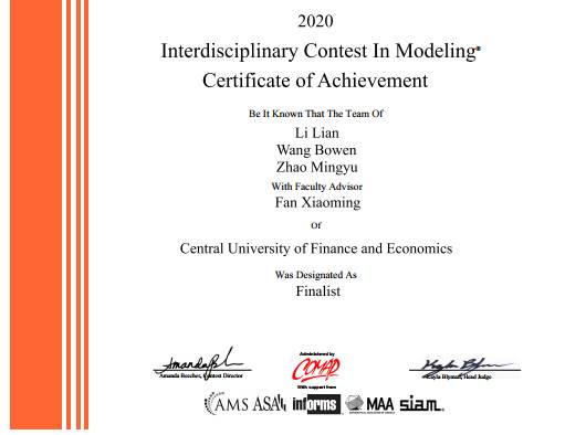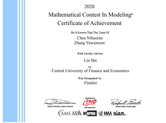倍受关注的2020年美国老员工数学建模竞赛(MCM/ICM)成绩于近日揭晓,公司学子再获佳绩,6支队伍获得特等奖提名奖(Finalist),19支队伍获得一等奖(Meritorious Winner),81支队伍获得二等奖(Honorable Mention)。