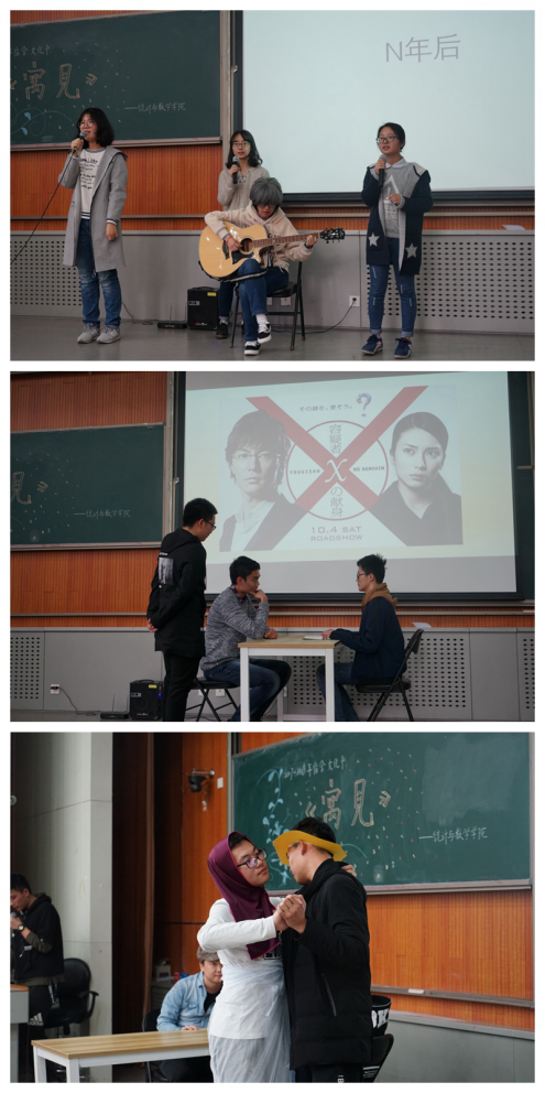 除此以外,2号楼507“忘忧殿”还原的《嫌疑人X的献身》,2号楼524“中财颜值担当”改编的《石壕吏》(片段),2号楼528“中央革命根据地”表演的《装在套子里的人》(片段),一段段经过同学们精心构思编排的,极具表现张力的舞台短剧,风格各异,不一而足。风采展示之后的宿舍管理知识问答环节不仅检验了参赛同学对宿舍管理相关条例的熟记与否,也加深了台下同学对宿舍相关规定的了解,进一步引起全体同学对宿舍安全问题的重视。