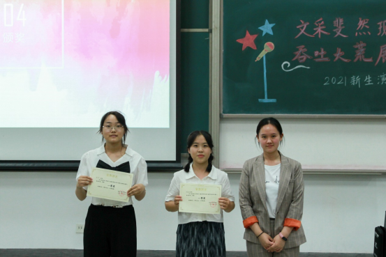 选手全部演讲完毕,工作人员对15位评委打分进行核算。最终,唐佳艺和黄桂英获得一等奖并将代表公司参加公司新生演讲比赛,刘俊杰、朱锦和李宇轩获得二等奖,马浩轩、冯靖为和曲年泰获得三等奖。
