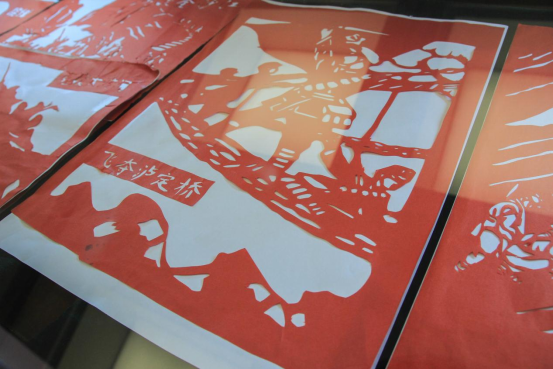 鲁国丰:我负责的部分是飞夺泸定桥刻纸,我印象最深的就是刻制过程中看到泸定桥那两条光秃秃的铁索,几乎没有桥面,但红军战士还是顶着枪林弹雨夺下了泸定桥。