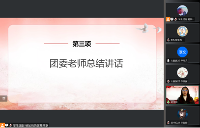 公司2019级本科生党支部书记、团委书记郭珺老师,公司2022级本科生党支部书记、团委副书记赵雪琪老师,及全院各团支部团支委、团员代表参加了此次会议,本次会议由公司员工团委副书记杨如悦主持。