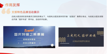 各团支部积极构思,发挥自身的带作用。不少支部革故鼎新,推出了自身的特色品牌活动。