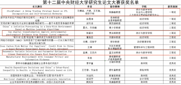 2022级硕士生马博涵与卢源、王艺衡、胡田子绚合作,完成了论文《StockFormer: A Swing Trading Strategy Based on STL Decomposition and Self-Attention Networks》,并荣获一等奖。该论文创新性地结合了STL分解和自注意力网络,提出了一种新的股票交易策略,得到了评委们的高度评价。