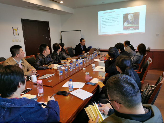 会议伊始,理论中心组成员薛玉山老师做“不忘为党育人、为国育才初心,牢记‘双一流’建设、教育强国使命——学习《习近平新时代中国特色社会主义思想学习纲要》”主题发言。薛老师从“双一流”建设的初衷、什么是“双一流”、不忘初心,坚守情怀、如何落实“双一流”建设四个方面出发,讲述了如何牢牢抓住立德树人的根本任务,牢记教育初心,致力“双一流”建设。