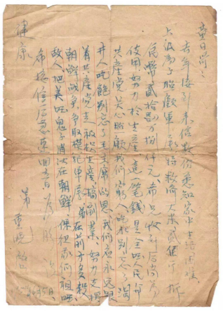 “弟现在为人民出一点力,但上级批准立功的奖状没有发下来,弟不能把奖状邮到家里去。”从其提到立功可以看出况重晚在部队的优秀表现。