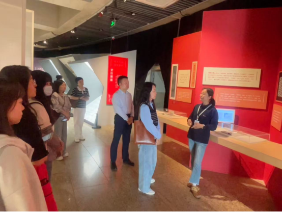 馆内讲解员带领大家参观“何以家国”文化主题展。展览深入探寻“家”的起源和内涵,围绕家庭、家教、家风、家园四个板块展开,以图文叙事的形式,展现了个人与家庭、社会、民族、国家之间的联系。学员们沿着历代家风发展脉络,感受古今先贤、革命先烈传承家风家训的文化魅力,体会家风故事中勤正修身、廉洁自律、善作善为的深刻内涵,激发新时代文化自信。